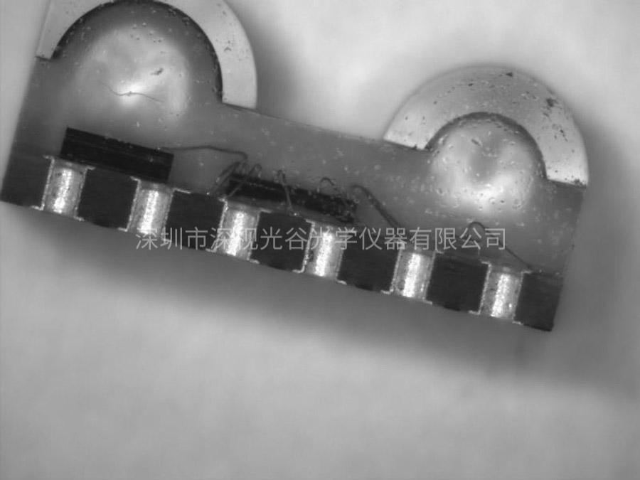 LED燈引腳瑕疵的檢測,采用是高端研究級偏光金相顯微鏡及最新軟...