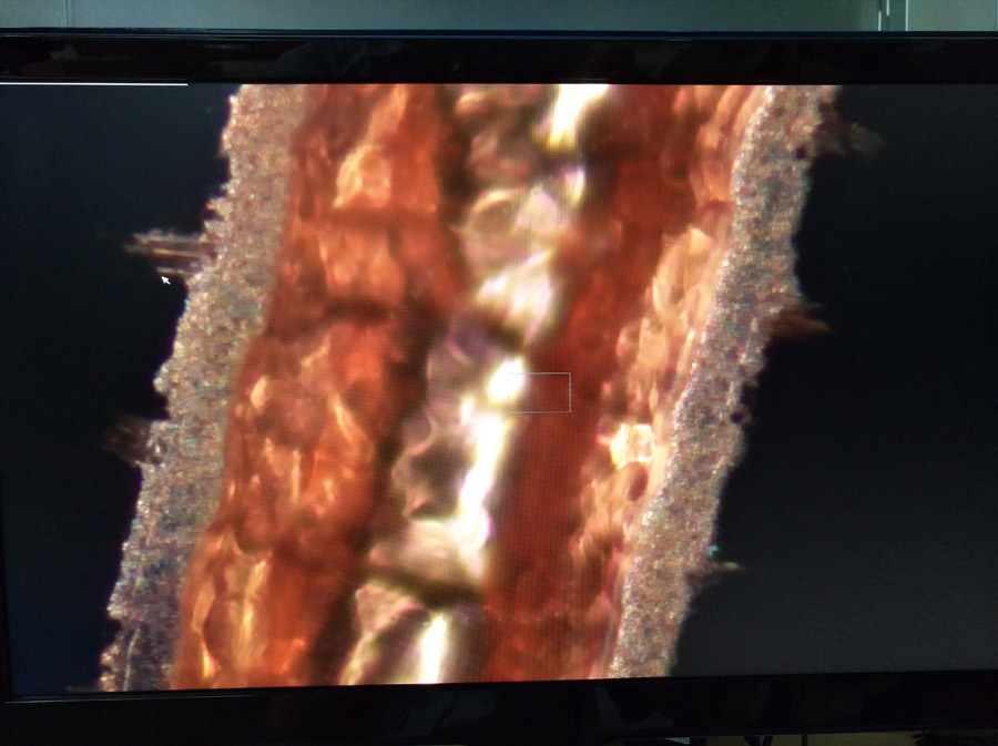 LED燈引腳瑕疵的檢測,采用是高端研究級偏光金相顯微鏡及最新軟...