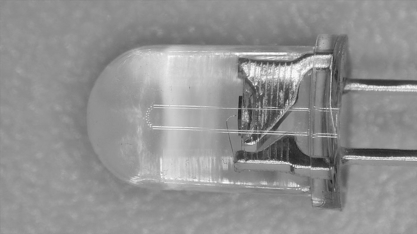 LED燈引腳瑕疵的檢測,采用是高端研究級偏光金相顯微鏡及最新軟...