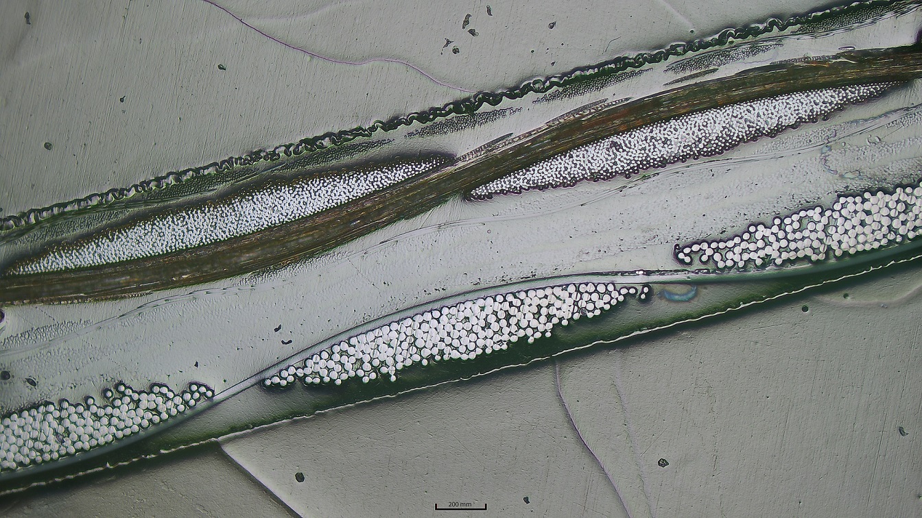 LED燈引腳瑕疵的檢測,采用是高端研究級偏光金相顯微鏡及最新軟...